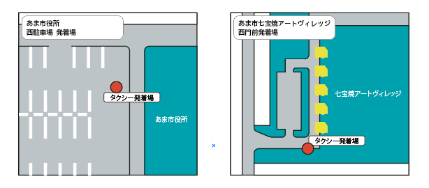 - 送迎の場合はあま市七宝焼アートヴィレッジ北門から入って係員の誘導に従ってご利用ください。